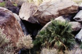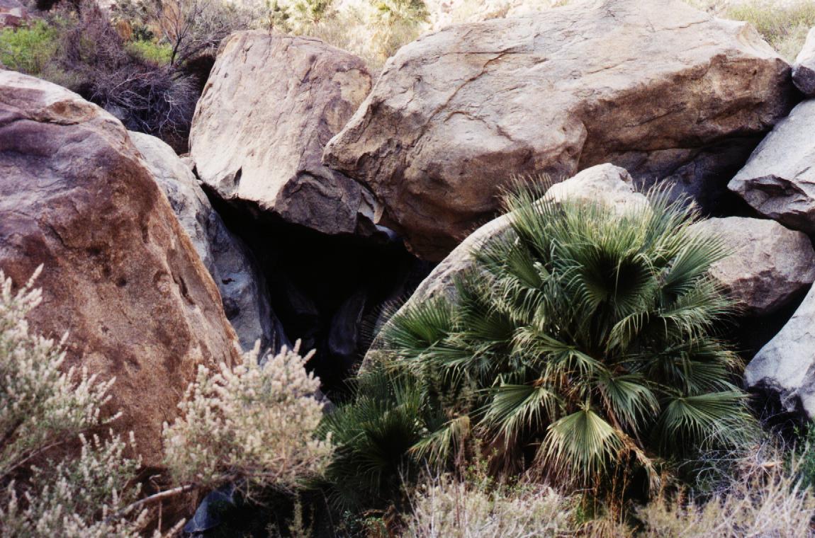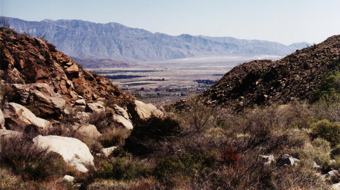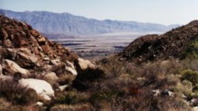 A view from the oasis down into the dry valley. Anza Borrega SP