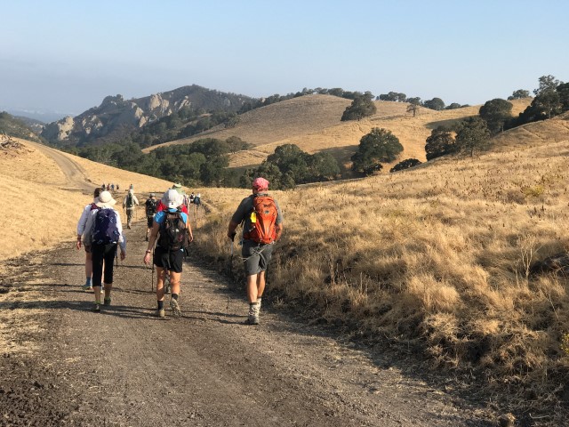Three people sent in their tracks [17.8mi, 5.0kft; 17.6mi, 4.8ft; 18.6 mi {+1 mile route}, 4.9kft] which confirm we had about 5kft gain. With the heat, a few people were lobbying for a 5, and there was unanimous agreement that this route was harder than the standard Diablo routes. But. . .my subjective judgment was it wasn't a 5 because there were too many happy-looking people.