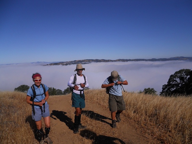 It started with the usual Steer Ridge Trail, very steep with no warm up. We climbed through the fog making the task somewhat easier. Two third of the way up, the sun was there to greet us; now, this is the real Henry Coe. By the time Peter, David, Rufina and I got to the top of Wilson Peak, the six others were already gone. Warmed up, I went on, down the Wilson Peak trail and left on Grizzly Gulch Trail. By the time I reached the Rock Tower Trail, I was just behind Sarah. I went up the trail and quickly lost sight of her. About a quarter of a mile after crossing Jackson Road, I “lost” the trail. Instead of going back to find where I had lost it, I looked around and saw a trail a little further and I simply followed it. I did not realize this was actually the Spring Trail. Since there were no trail names for a while and the mileage seemed to coincide reasonably well with that on the worksheet, it is only at Wasno Road that I realized my mistake. By that time, I had added an extra mile and I was behind everybody. I decided to take Wasno Road and Coit Road to Cross Canyon Trail, minimizing the risk of another detour.