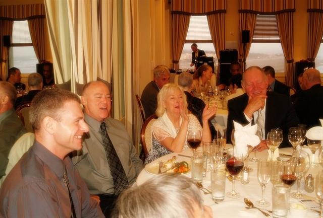 After a cold shower at the hostel, I managed to find a 7-11 (Slurpee!--and none too soon, as I was seriously flagging), get lost, then eventually find a route to the GG bridge. Changed into a suit on the beach and made it to the Cliff House. I wasn't quite on time, but that was lucky too because I was allocated a no-show's seat--at the family table (to be clear, it was lucky for me; not so lucky for Elaine and Doug's family and neighbors!).