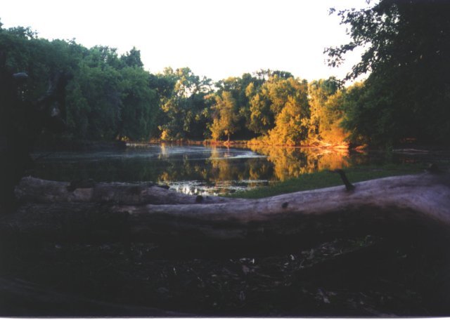 The Skokie Lagoons are the result of a flood control project done by the Civilian Conservation Corps in the 1930's. It's somewhat ironic that a Democratic President has cursed the largely Republican area with a huge mosquito population. Located south of Lake-Cook Road, North of Willow Road, East of the Edens Expressway, and west of Forest Road in Skokie. Ample free parking is available We don't have a depth map for the lagoons (see the links at the left for a forest preserve district map), but we do have this 1996 report from a correspondent: I did a quick circle tour of the lagoons via the bike path on Saturday. Fishing is back. I encountered a guy carrying a spin-casting rig on the bike path as the first sign. I also saw a couple of kayaks, an inflatable, and a rowboat out on the waters. The water was very slow-moving and covered with cottonwood seeds. The boat ramp is located on the south side of Tower Road, just east of the Edens. It is new within the past five years, and I think the concrete extends below the water line. Near the boat ramp, there was a sign posted by the CCFPD warning that the water had been treated with two aquatic herbicides (Diquat and something else) on June 19, 1996 to improve shore fishing conditions. The notice said not to eat the fish or drink the water until July 4, 1996. Personally, I plan to never drink the water from the Skokie Lagoons, and I can pass on the fish, too. People were fishing. The lagoons have undergone a multi-year "restoration" project to improve the quality of recreation. This involved dredging, building a new boat ramp, and poisoning all the existing fish (mainly carp, I guess) so new game fish could be introduced. This project involved a certain amount of inconvenience. North of Tower Road, the bike path on the west side of the lagoons remains officially closed, although the path has been completely paved for over a year. There are no obstacles to riding on this side. The path does go by a large mound created a few years ago to hold the sludge they dredged out of the lagoons. Perhaps the mound is not quite stable yet. (The mound is posted with "keep off" signs warning about unstable soil, but it looks pretty solid.) There were some previous attempts to block the west side path, such as gates and plastic construction fencing, but these were quickly demolished. The FPD seems to have given up now. Perhaps someday they will finally reopen the path officially. [The path has long since reopened.] The bike path on the east side of the lagoons between Tower and Dundee continues to be open, but there's a lot of foot traffic with people crossing between their cars and the picnic areas. The west side path (being closed) is much more lightly travelled. Access to the boat ramp is off of Tower Road. From the north, exit the Edens at Tower Road, then west on Tower. From the south, exit the Edens at Willow Road westbound, then turn right at the first light on Frontage Road, and take Frontage to Tower. The ramp entrance is the first right after you cross the Edens on Tower. There is also a parking area on Willow, just east of the Edens. From the north, you would exit at Tower, and follow Frontage Road down to Willow. The Edens is the western boundary, and Forest Way Drive is the eastern boundary. You can park on the west side of Forest Way at several side-of-the-road spots. The water is pretty close at some spots, but I think you'd be better off fishing than trying to launch a boat on this side. The bike path runs all the way down into the city through the forest preserves. From Willow, it runs on the west side of the lagoons up to Tower. From Tower, the path officially switches to the east side, although you can be an outlaw [not anymore; both sides are open again] and ride the west side as mentioned above. North of Dundee Rd., the path runs through the Chicago Botanic Gardens, which is open until sunset, at which time they close the gates. This takes you up to Lake-Cook Road, where the path fizzles out. If you take Lake-Cook east about 3/4 of a mile, you can hook up with the Green Bay Trail on the east side of the railroad tracks. The Green Bay Trail can take you north up to almost the state line, although there are several places where you must detour over the roads. The Green Bay Trail runs south to Wilmette, with a few sections running on local streets. The detours on the north section are pretty hairy if you're not used to riding in traffic with trucks. The detours on the south section are more suitable for family outings. One note about the Chicago Botanic Gardens, which is actually part of the CCFPD, even though it's almost in Lake County. You can bike or walk through the grounds, but you can't rollerblade. Ha-ha, everybody hates rollerbladers on the trail. It's one thing the cyclists and runners can agree on. Also, if you bike, you must park your bike to actually tour the gardens. (Bikes are restricted to the maintenance road running on the east side of the gardens.) A note on the Green Bay Trail. This trail runs along the Union Pacific (formerly Chicago and Northwestern) north line commuter tracks. Most of the trail is the former right-of-way of the North Shore electric line. This line used to run west from the el station in Wilmette across town, and then north along the C&NW tracks. I'm not sure how far north it ran, but it may have been all the way to Waukegan or Zion. When the right-of-way was abandoned, some of it got converted to to bike path, some became commuter parking. Generally, near a station, its parking, meaning you must exit to the street for a ways. In Wilmette, the path leads through a couple of parks, but between Wilmette and Kenilworth, the right-of-way was offered for sale to homeowners. As a result, there's just a narrow path right along the commuter tracks. Some of the homeowners have bought the old right-of-way to make big back yards. Some haven't, leaving just a kind of swampy area with a lot of trees and scrubby vegetat